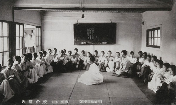 ▲ 기생 양성소 등 기생학교에 기생들이 교육받는 모습. 일제 시대 엽서 사진